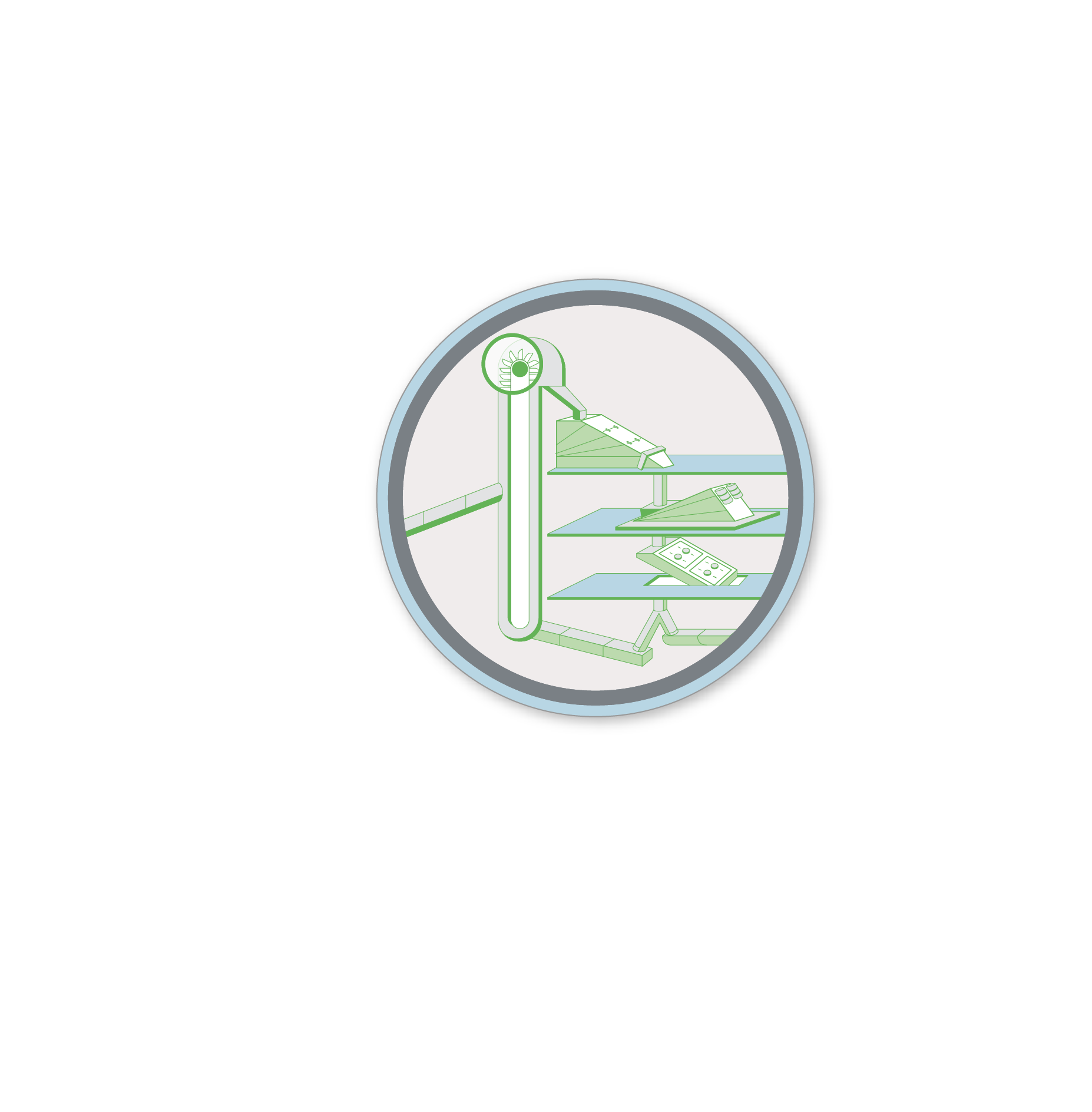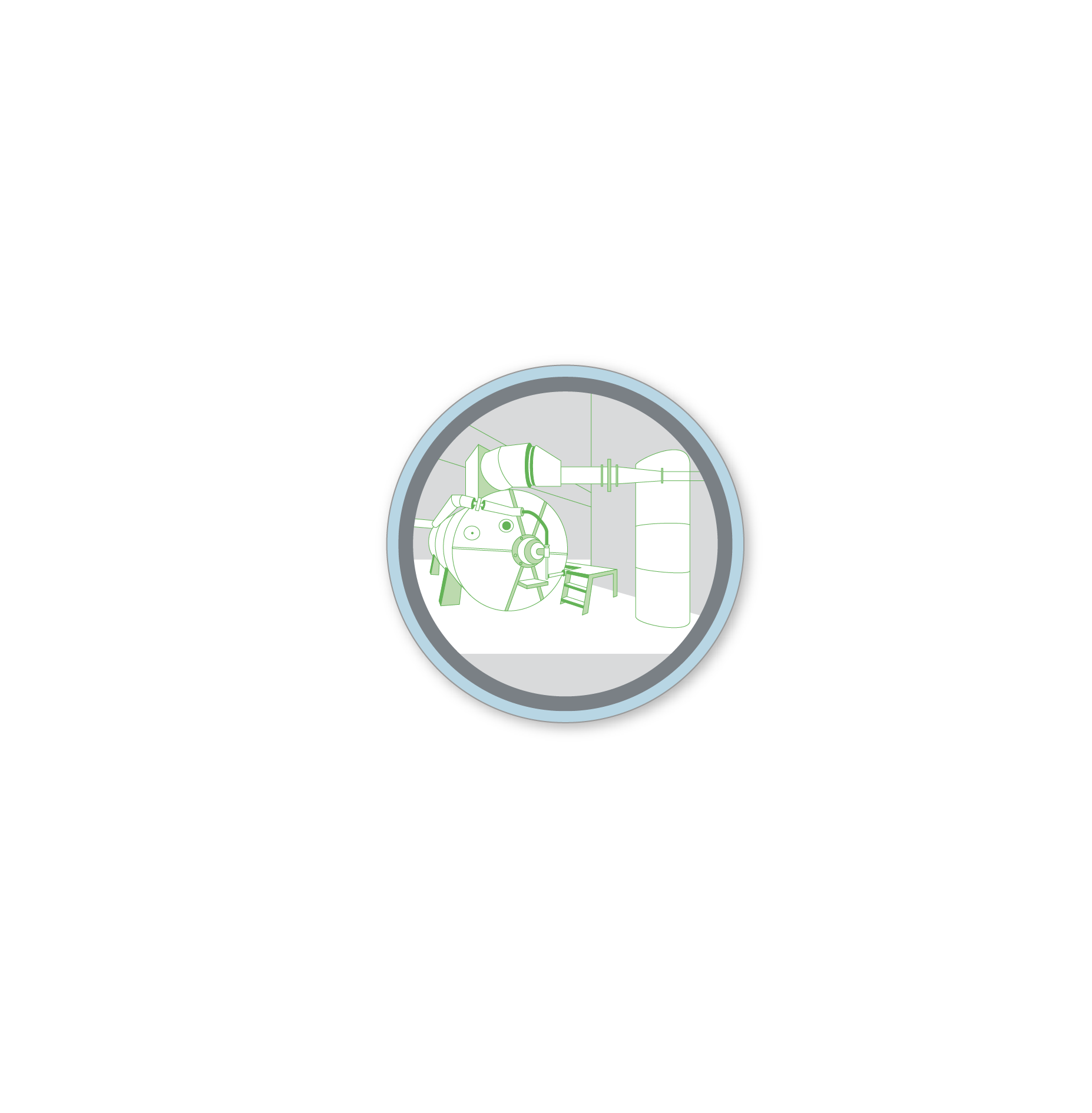 The fishmeal is carried up by conveyor belts and falls through tubes into what is known as the bar sizer, which sieves out coarse contaminants. The sieved fishmeal is evenly distributed on a vibrating channel and carried to the fine sizer, which deals with fine contaminants. If necessary, the fishmeal is then taken to the sterilisation system.